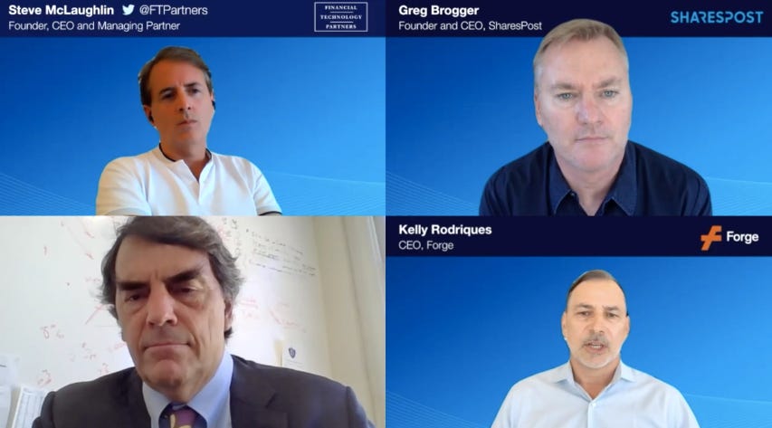 // FT Partners hosted Kelly Rodriques, CEO of Forge, Greg Brogger, Founder & CEO of SharesPost, and Tim Draper to discuss the merger of Forge Global and SharesPost – as well as innovations in the Alternative Investments Market.